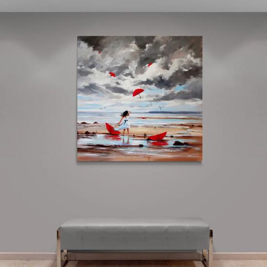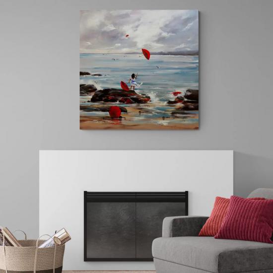 Deniz Kenarı - Laminasyonlu Kanvas Tablo