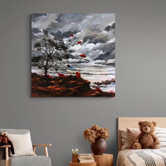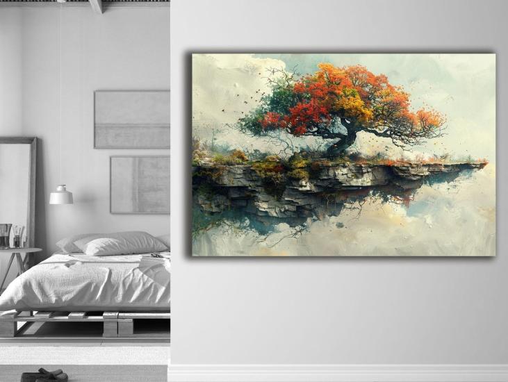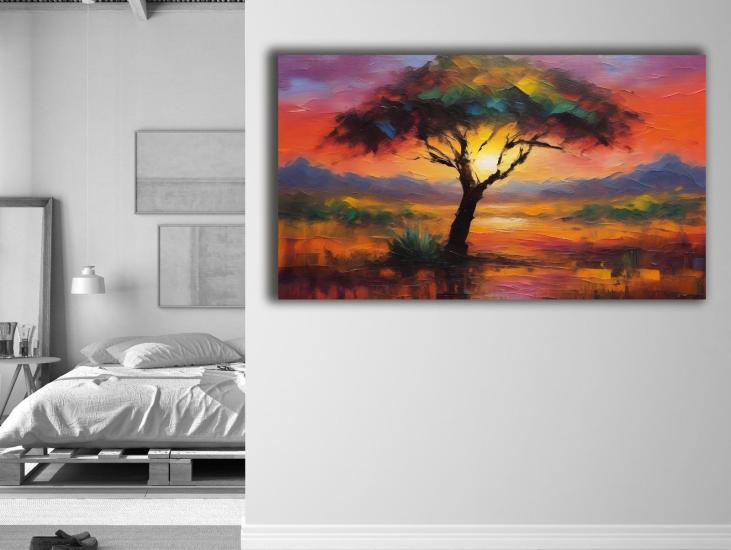 Yalnız Ağaç - Laminasyonlu Kanvas Tablo