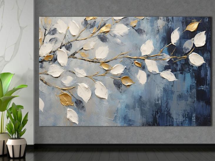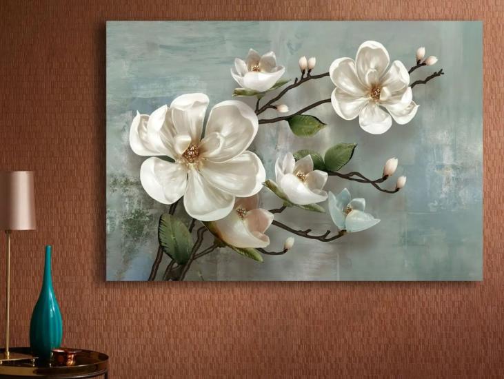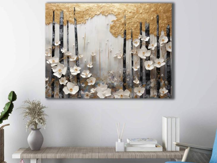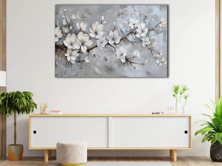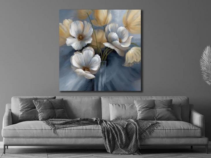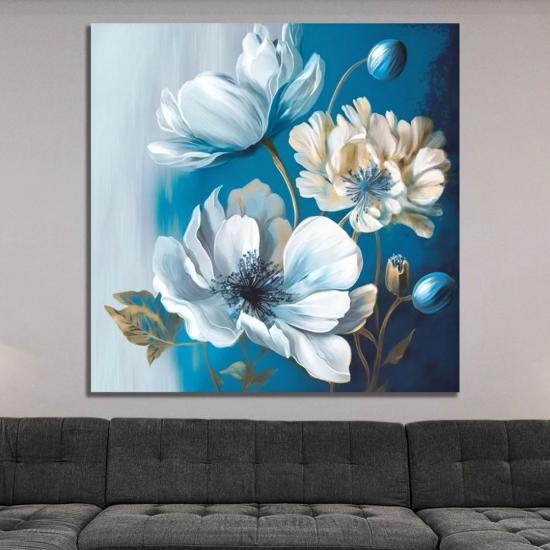 Gümüş Çiçekler - Sim İşlemeli Kanvas Tablo