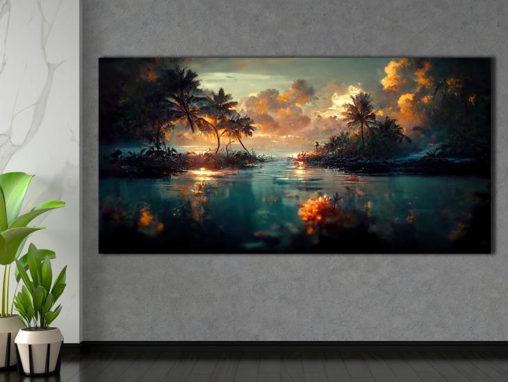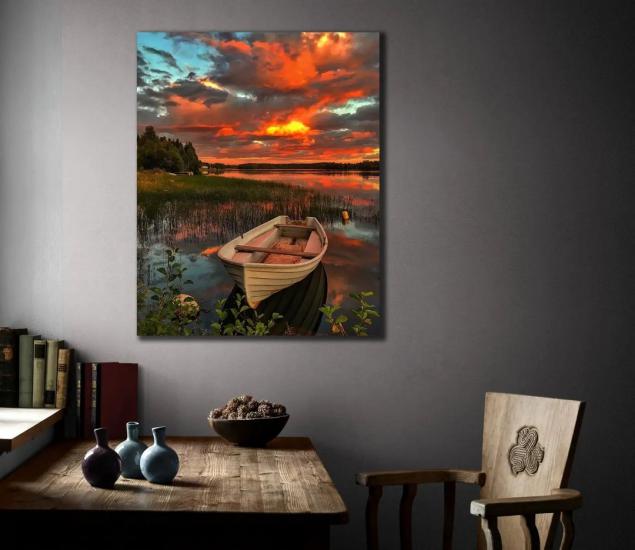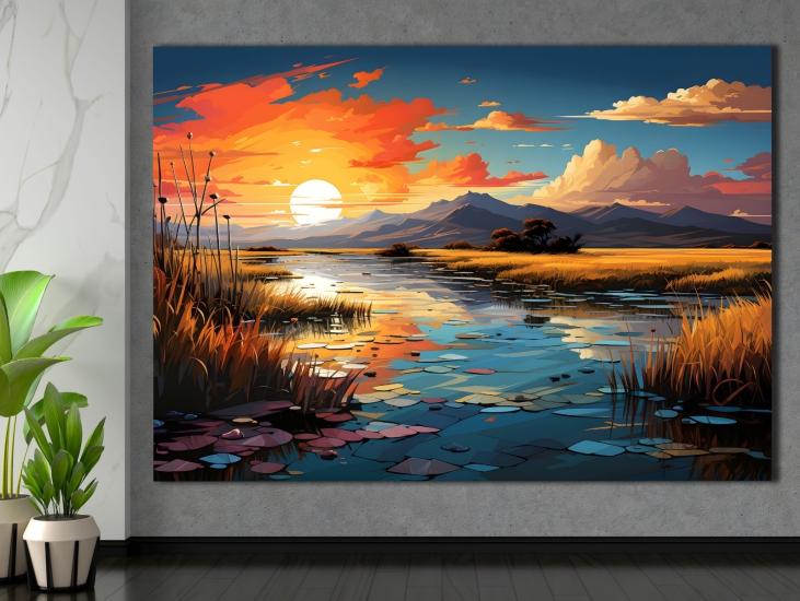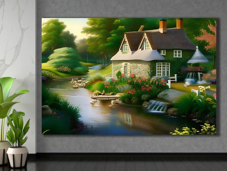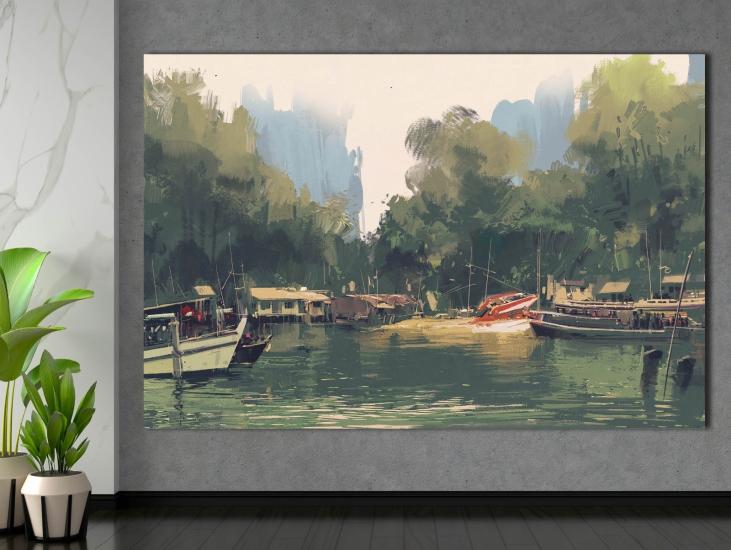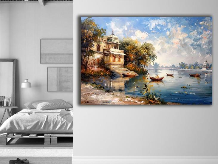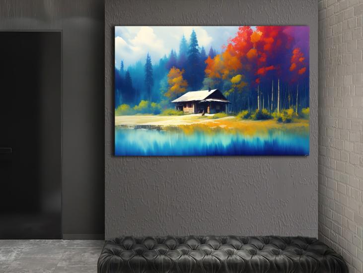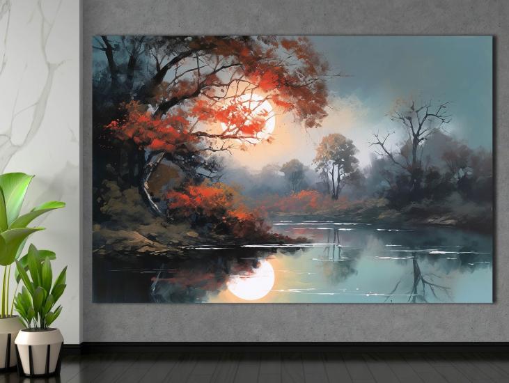 Göl Kenarı - Laminasyonlu Kanvas Tablo