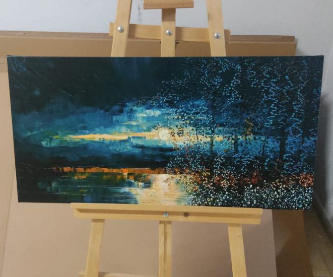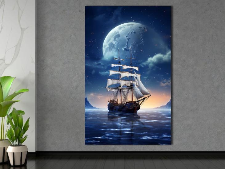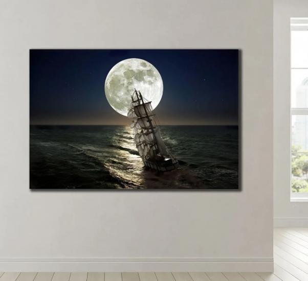 Ay Manzarası - Laminasyonlu Kanvas Tablo