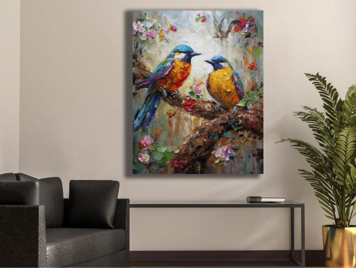 Sim İşlemeli Kanvas Tablo 2 li Set