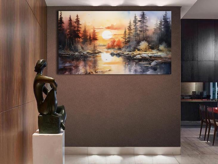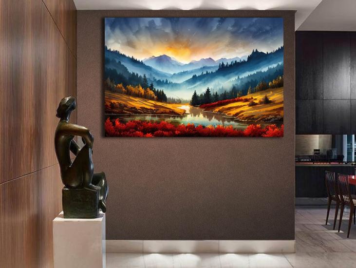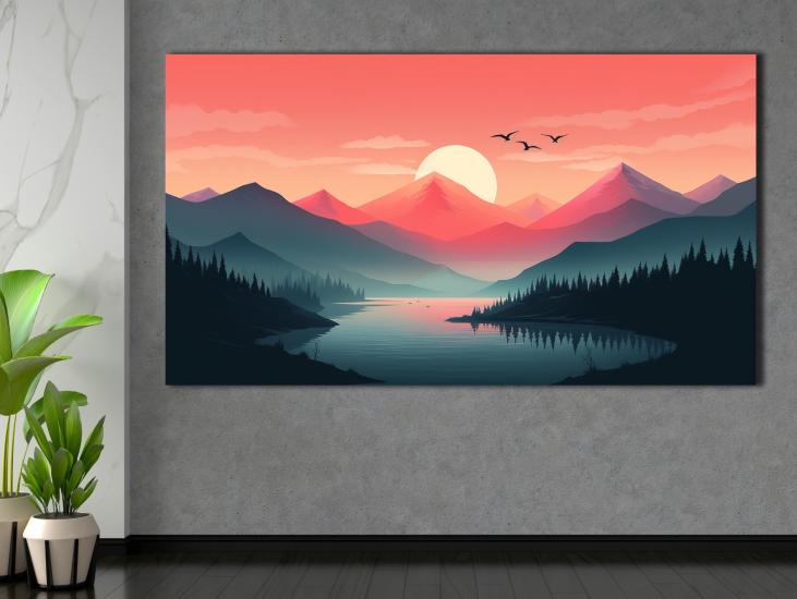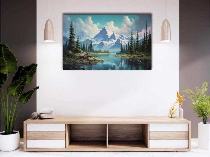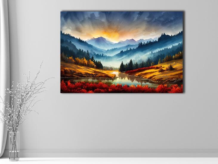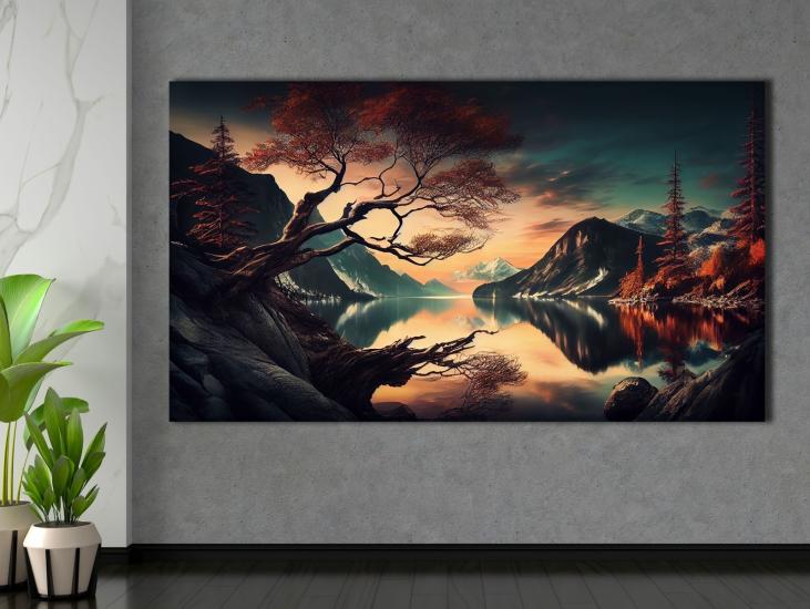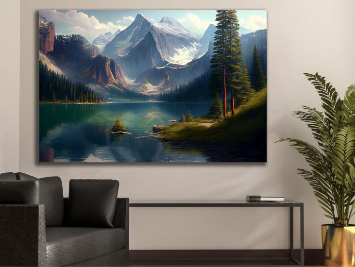 Göl Manzarası - Laminasyonlu Kanvas Tablo