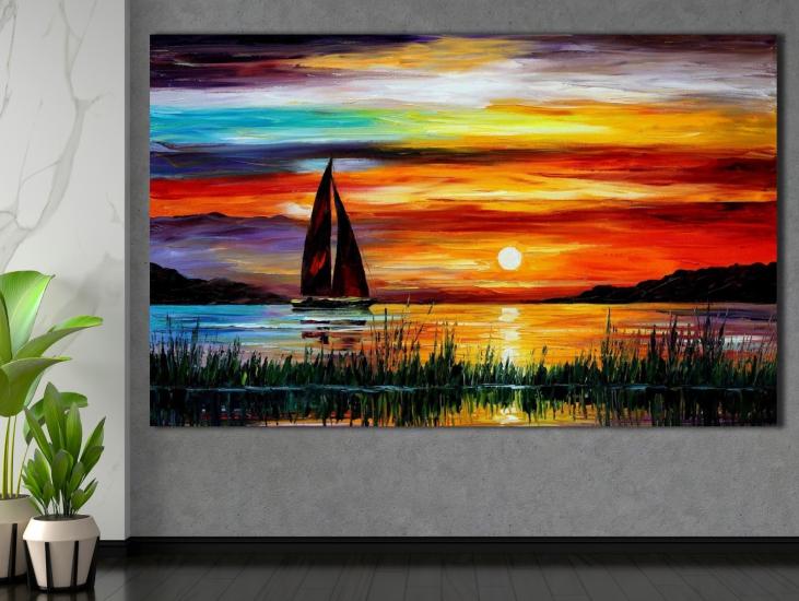 Yelkenli ve Güneş - Laminasyonlu Kanvas Tablo