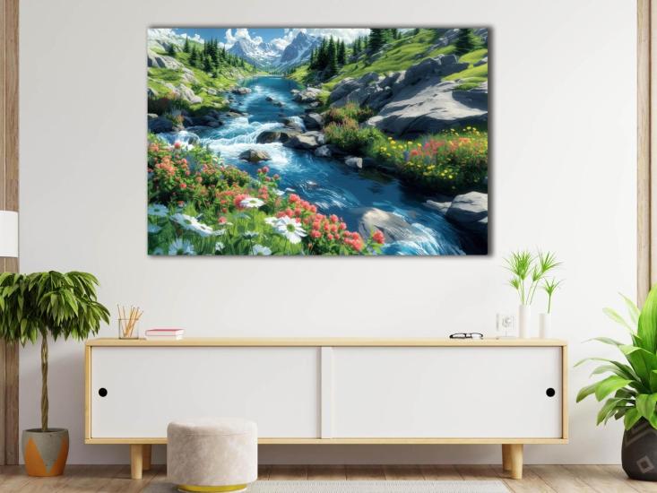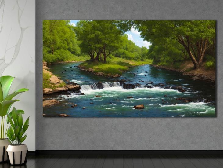 Dere Kıyısı - Laminasyonlu Kanvas Tablo