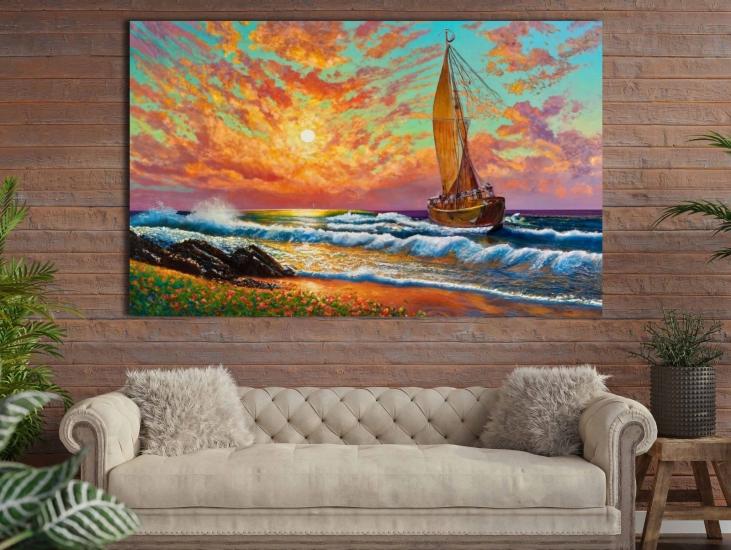 Yelkenli - Laminasyonlu Kanvas Tablo