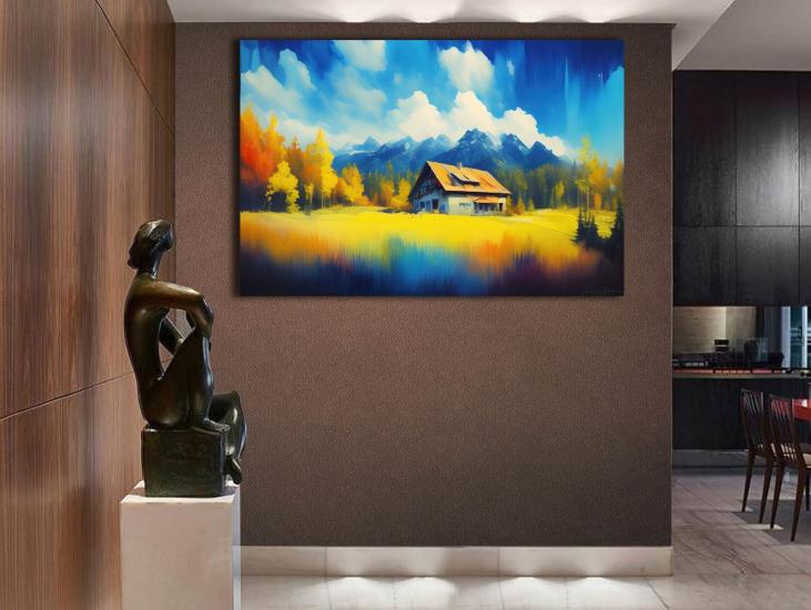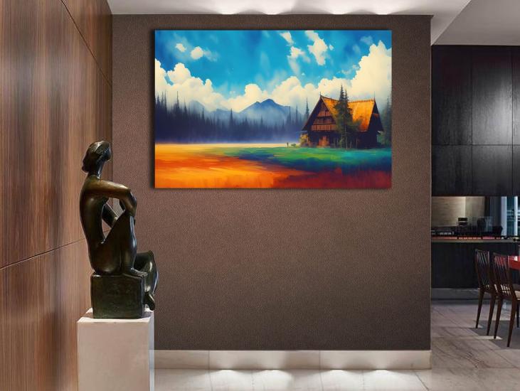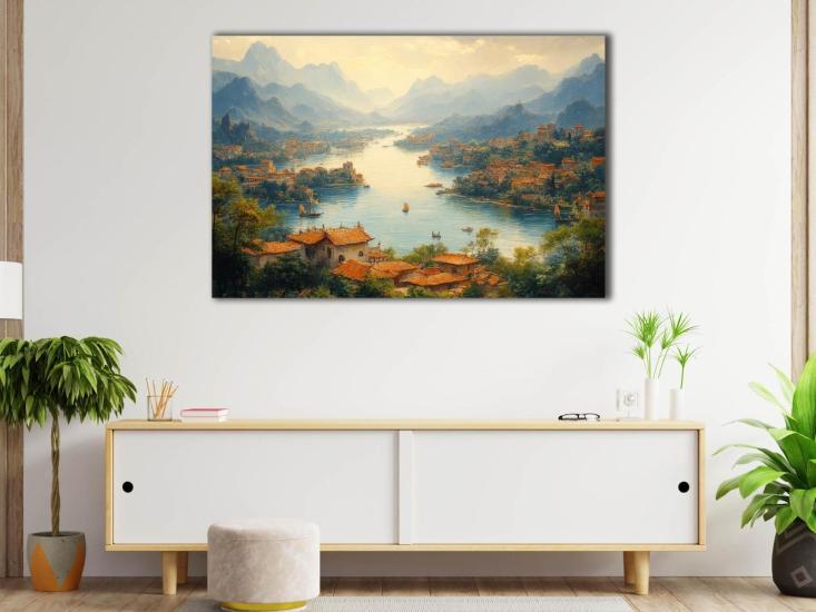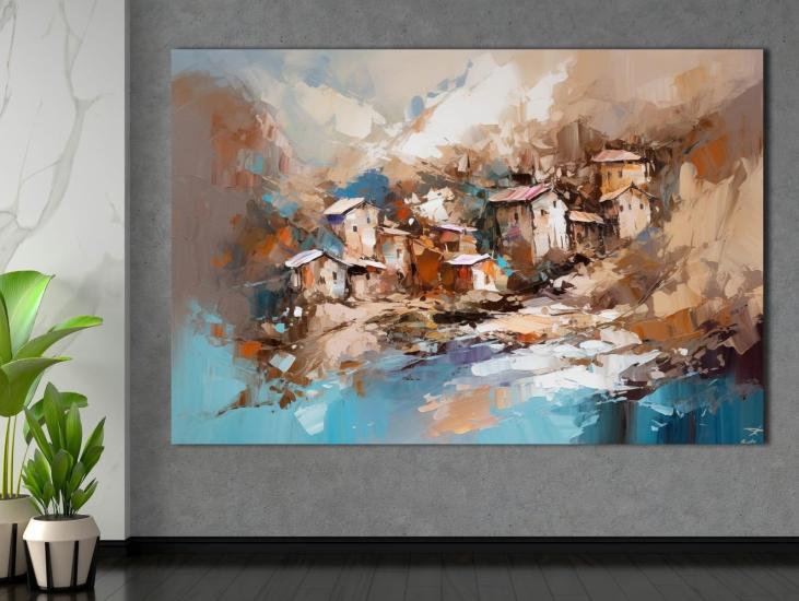 Uzaktaki Köy - Laminasyonlu Kanvas Tablo
